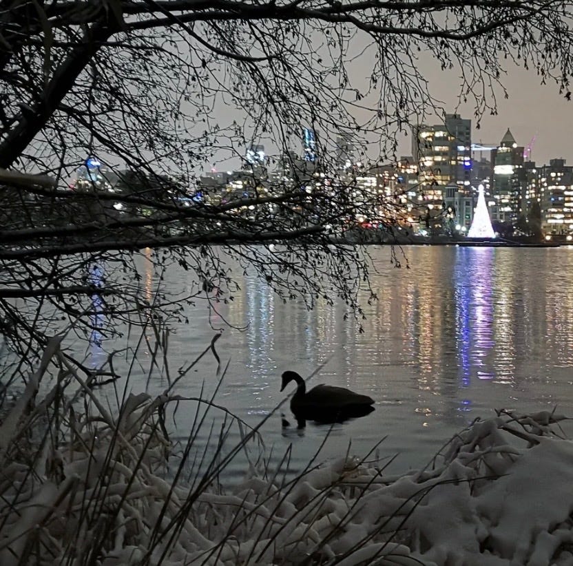 Another morning, a lone Canadian goose ventured into the shallows. The swan advanced without hesitation. There was no myth in it, no grace or illusion, only the law of survival; the territorial blunt action of a larger body defending it’s nest.